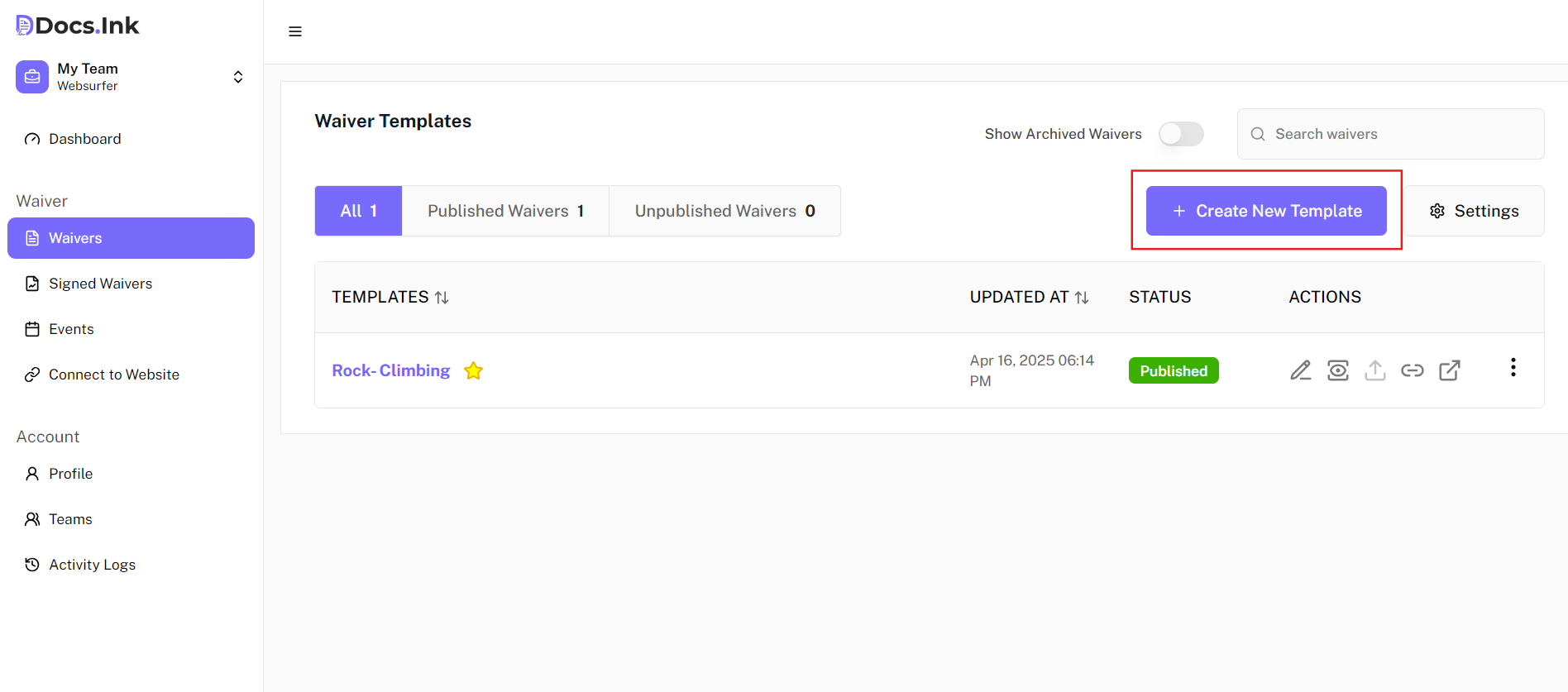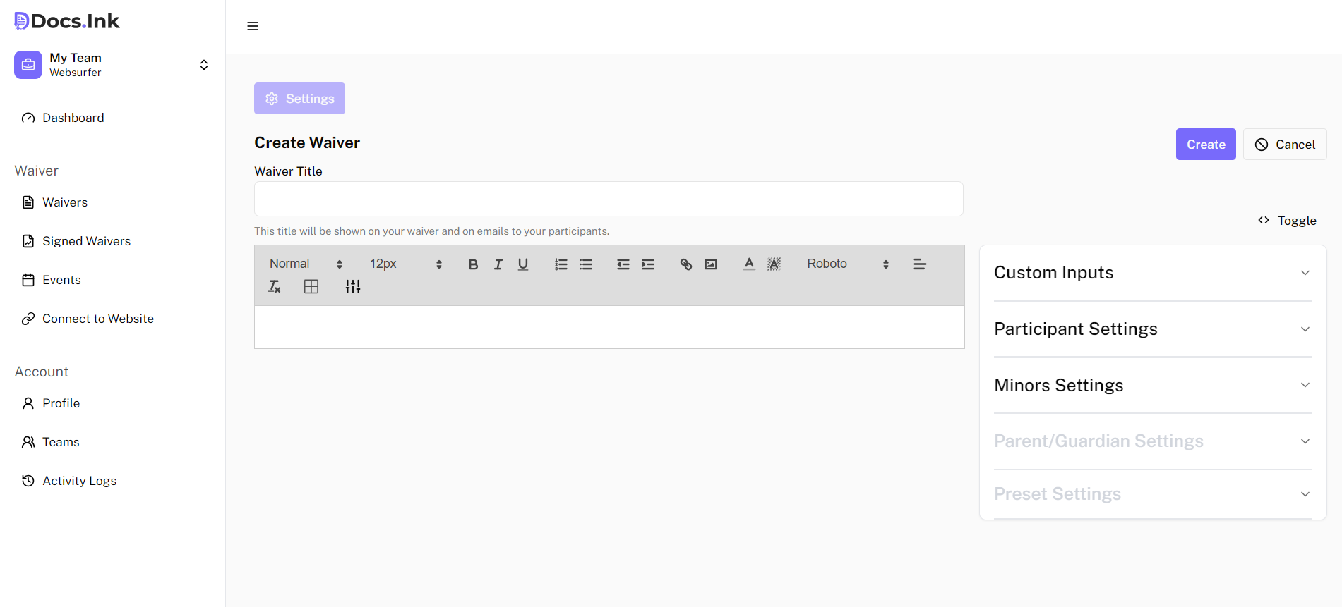 Docs.ink allows you to make edits & revisions to your waiver, or to create new waivers, at any time.