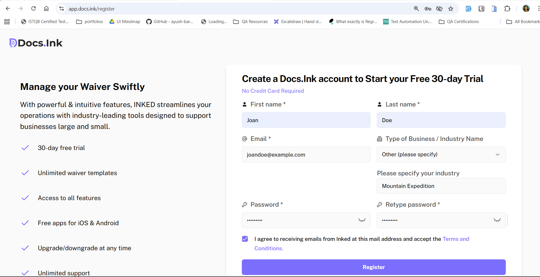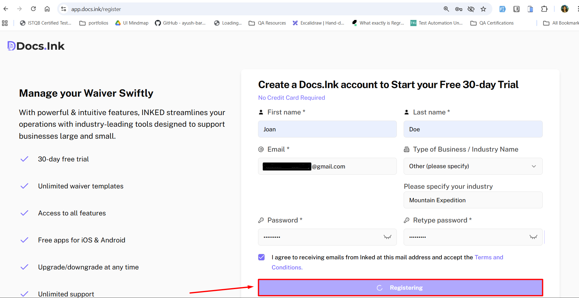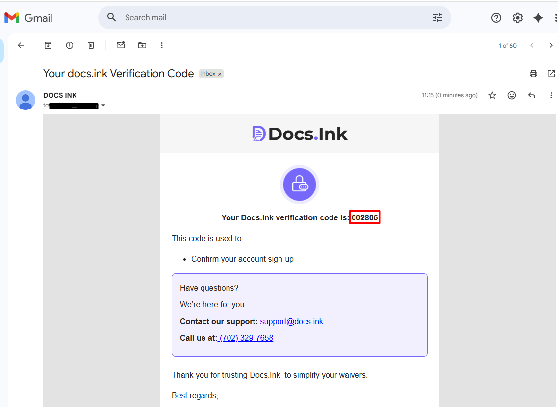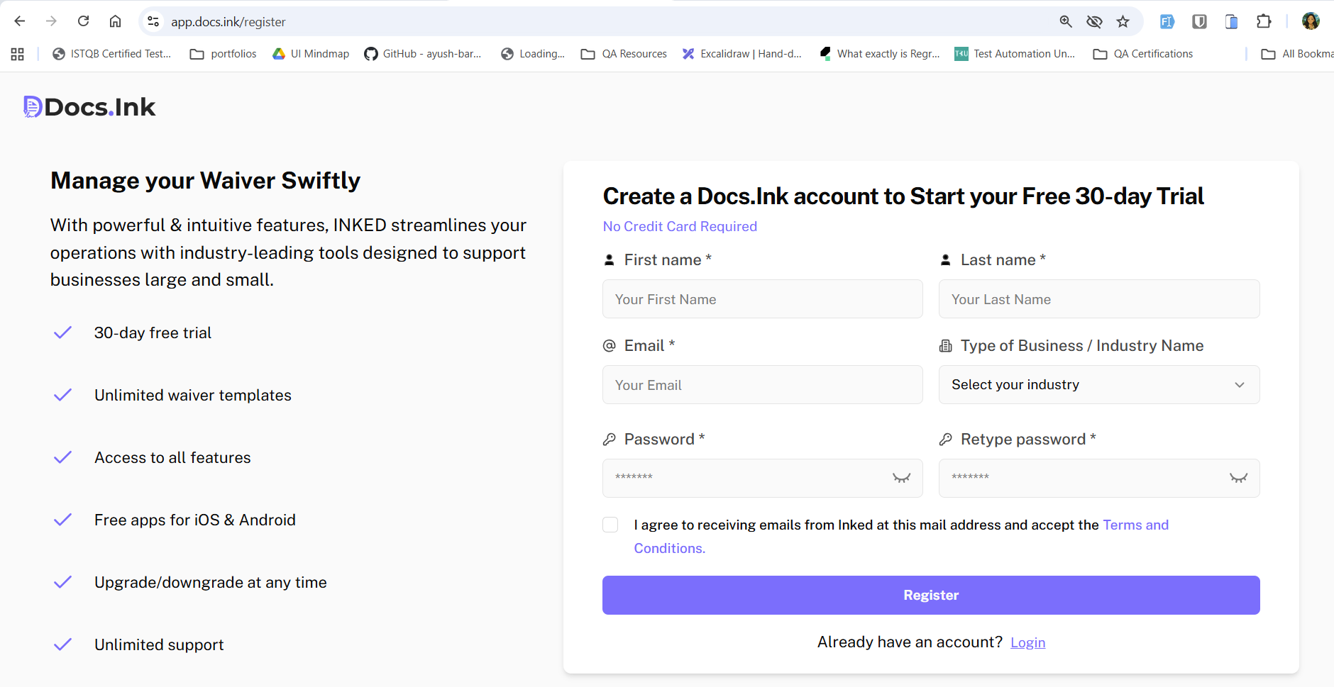 If you encounter any issues during registration, please contact our support team at support@docs.ink.