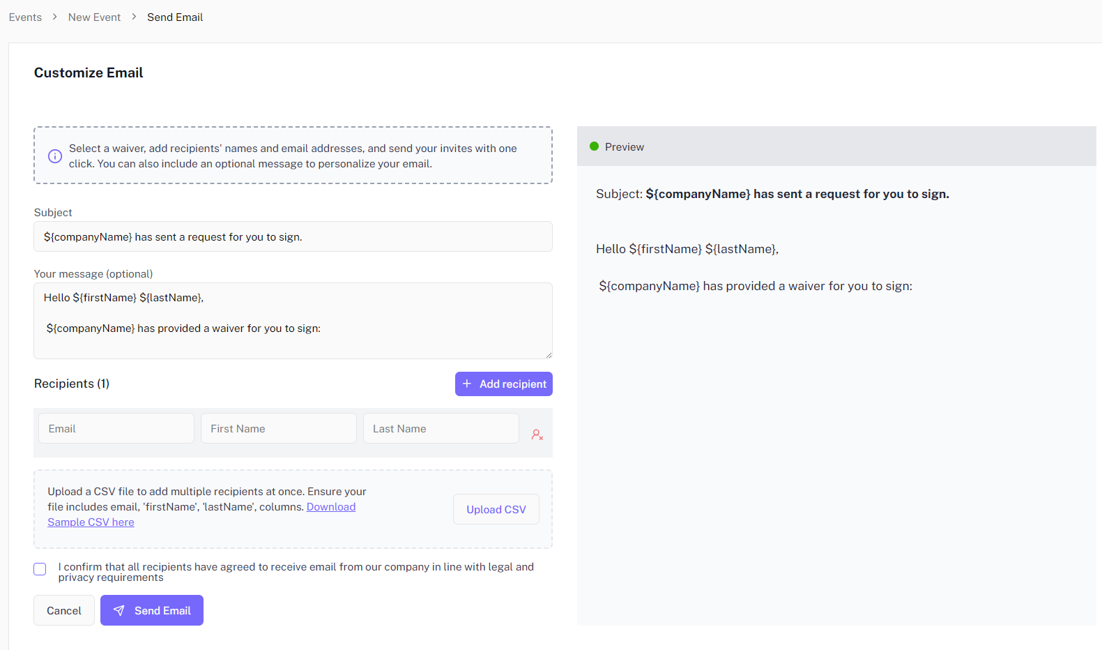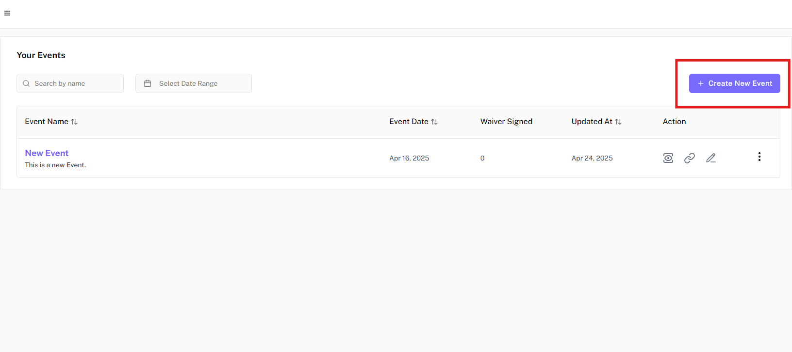 - Event Name: The name used to identify your event, both internally and externally. This will be shown to everyone who needs to sign the event waiver.