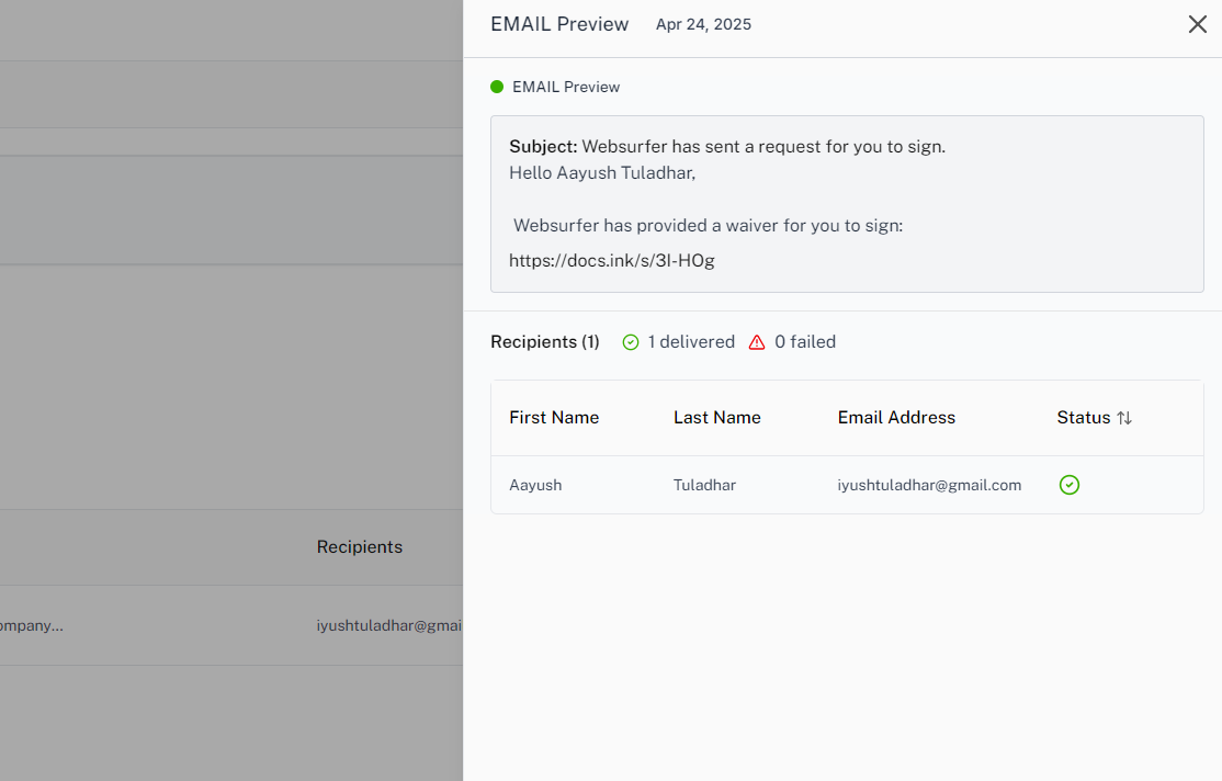 After sending an invitation you can preview the invitation and you can also see if the event is delivered or not.